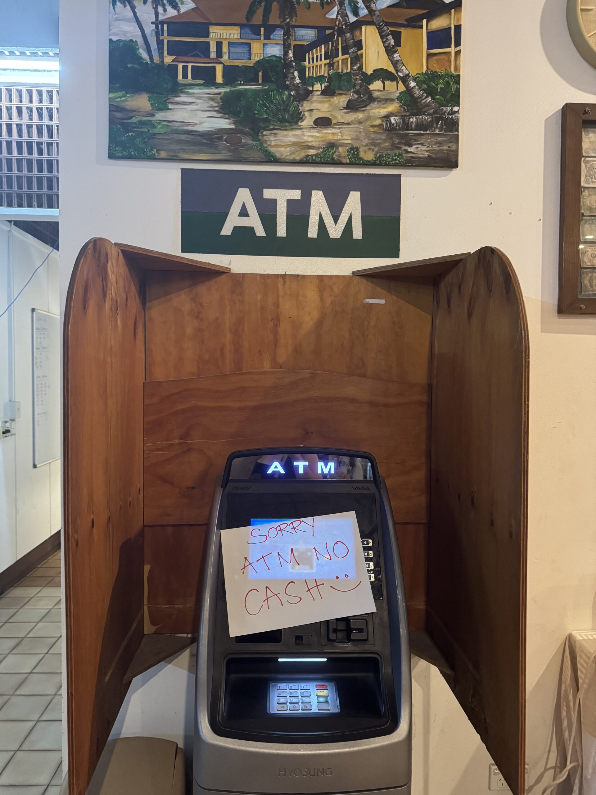 As we got closer to the airport, it started to get a little more built up. Thankfully, we finally found a working ATM. The one at the airport hadn’t worked and they didn’t have any cash exchange. Then the one at our hotel didn’t work either. I didn’t need a lot, I just wanted to have some Australian dollars in cash for Nauru and Kiribati because you can’t always assume that they’ll be able to take credit cards in this region.