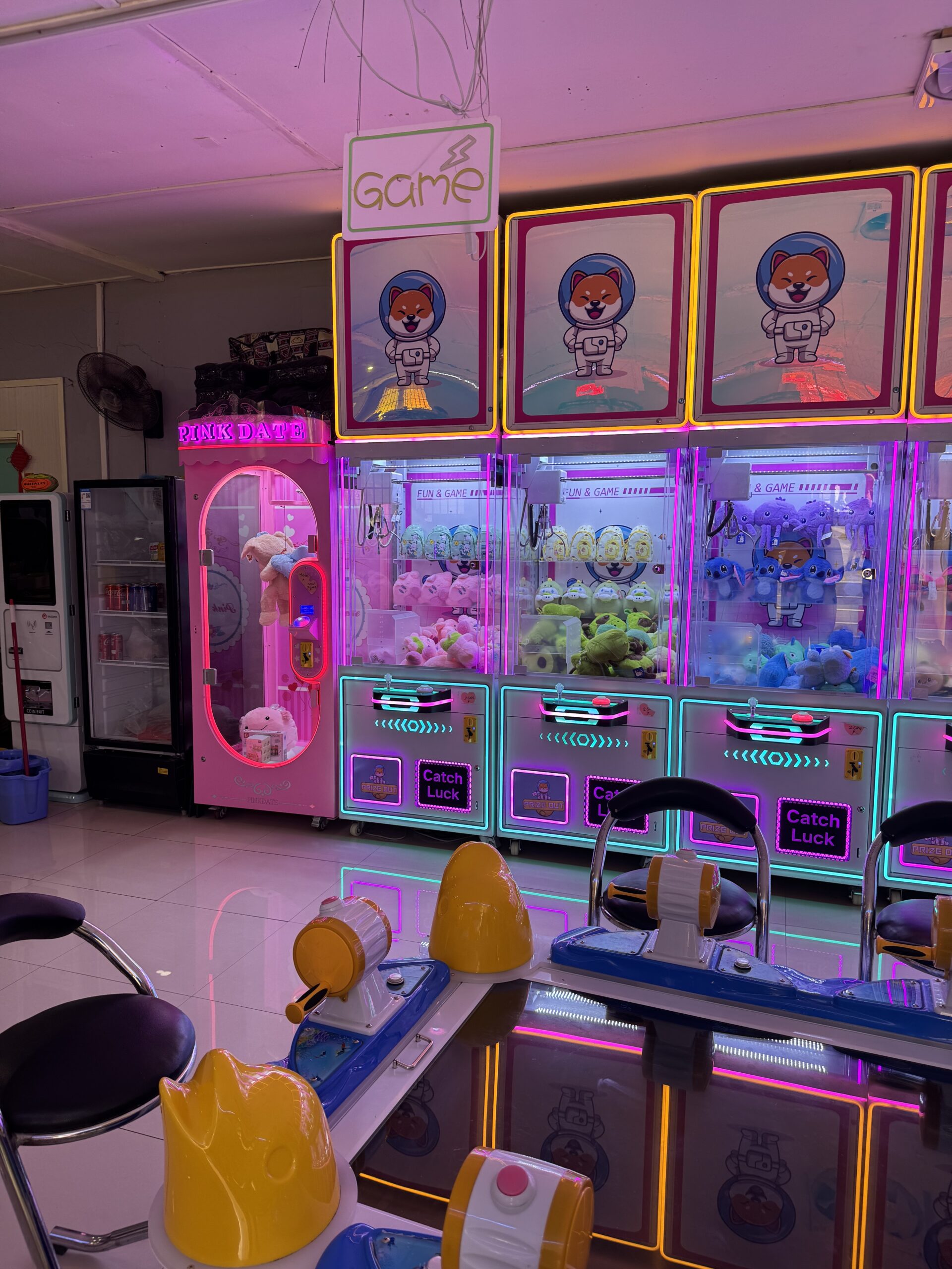 The convenience store shops all had great names, too. It reminded me of the shop names in West Africa, which were medleys of seemingly-random adjectives and nouns. We did find an arcade that was open, and Lucy and I played a couple quick games of air hockey as a fun break! It was nice to have some time in the air conditioning, since it had gotten pretty hot outside during our walk.