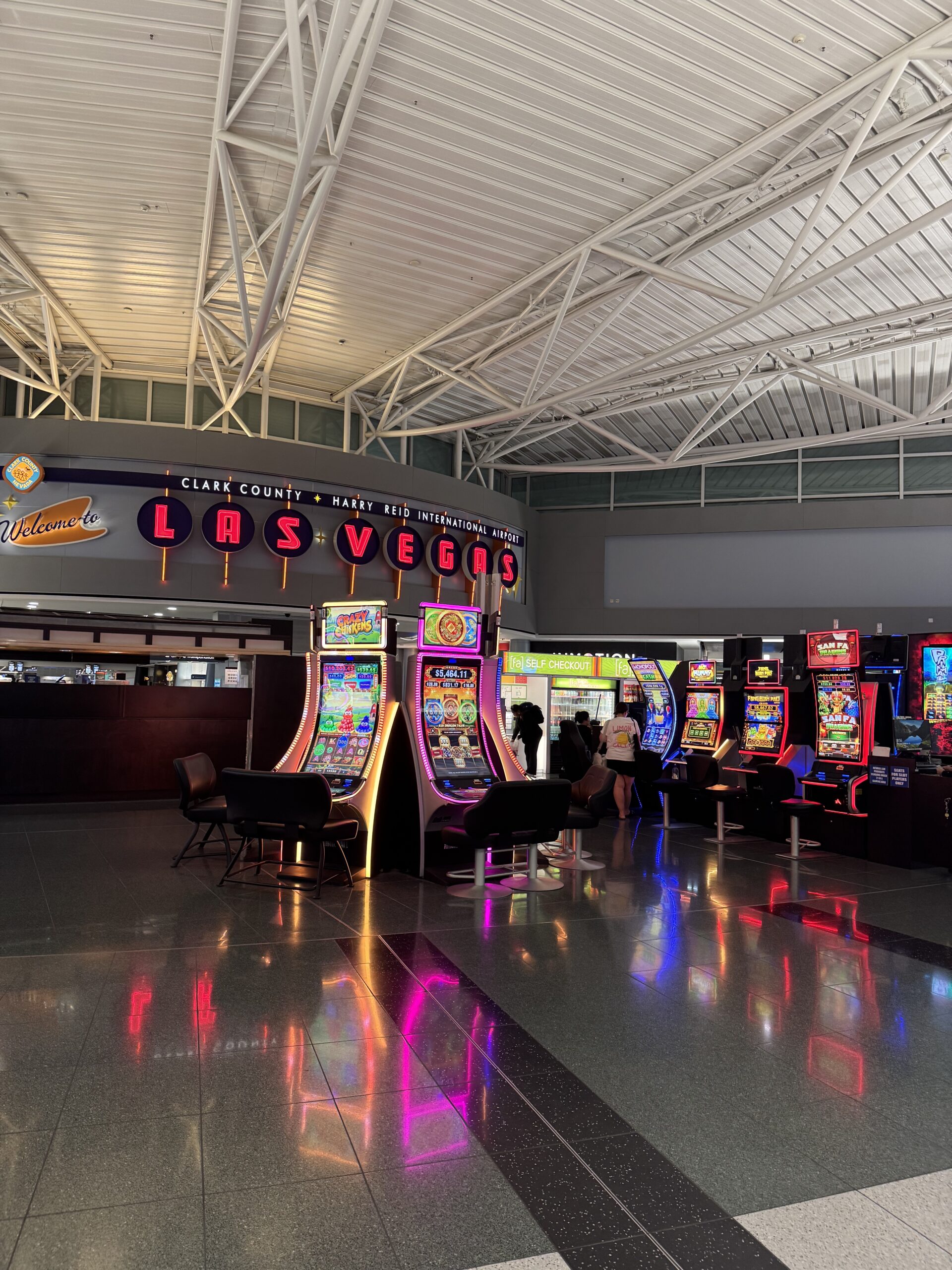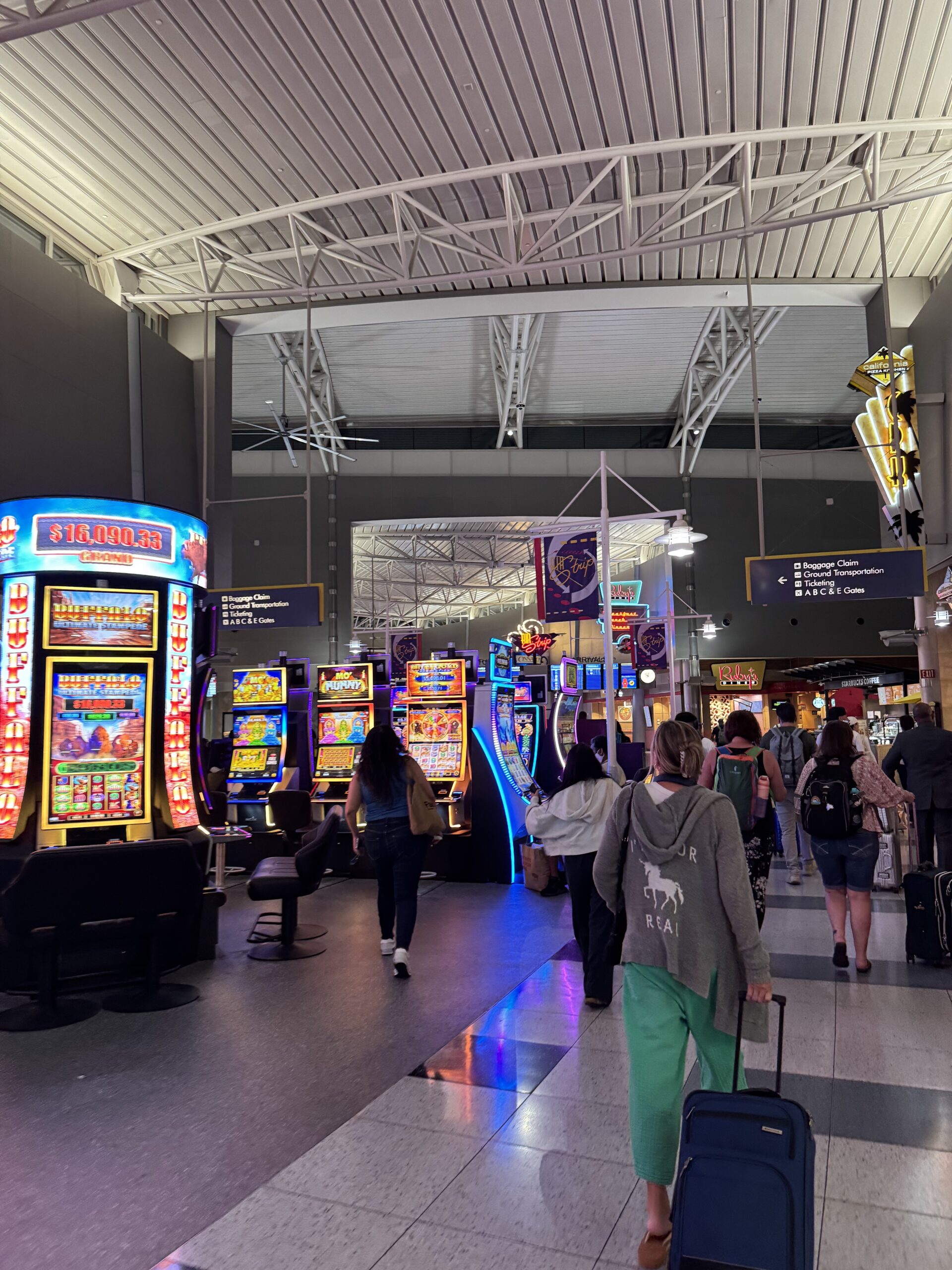 Landing in Vegas is an intense sensory overload. It was an overwhelming experience even at the airport, with the slot machines starting as soon as I got off the plane. My parents had me stop at a liquor store in the airport so that we could get wine, because of course there’s a whole liquor store adjacent to baggage claim. Then I got a ride to the hotel from the craziest taxi queue I’ve ever seen, with people wall-to-wall and five or six different lanes of where the cars could pull up.