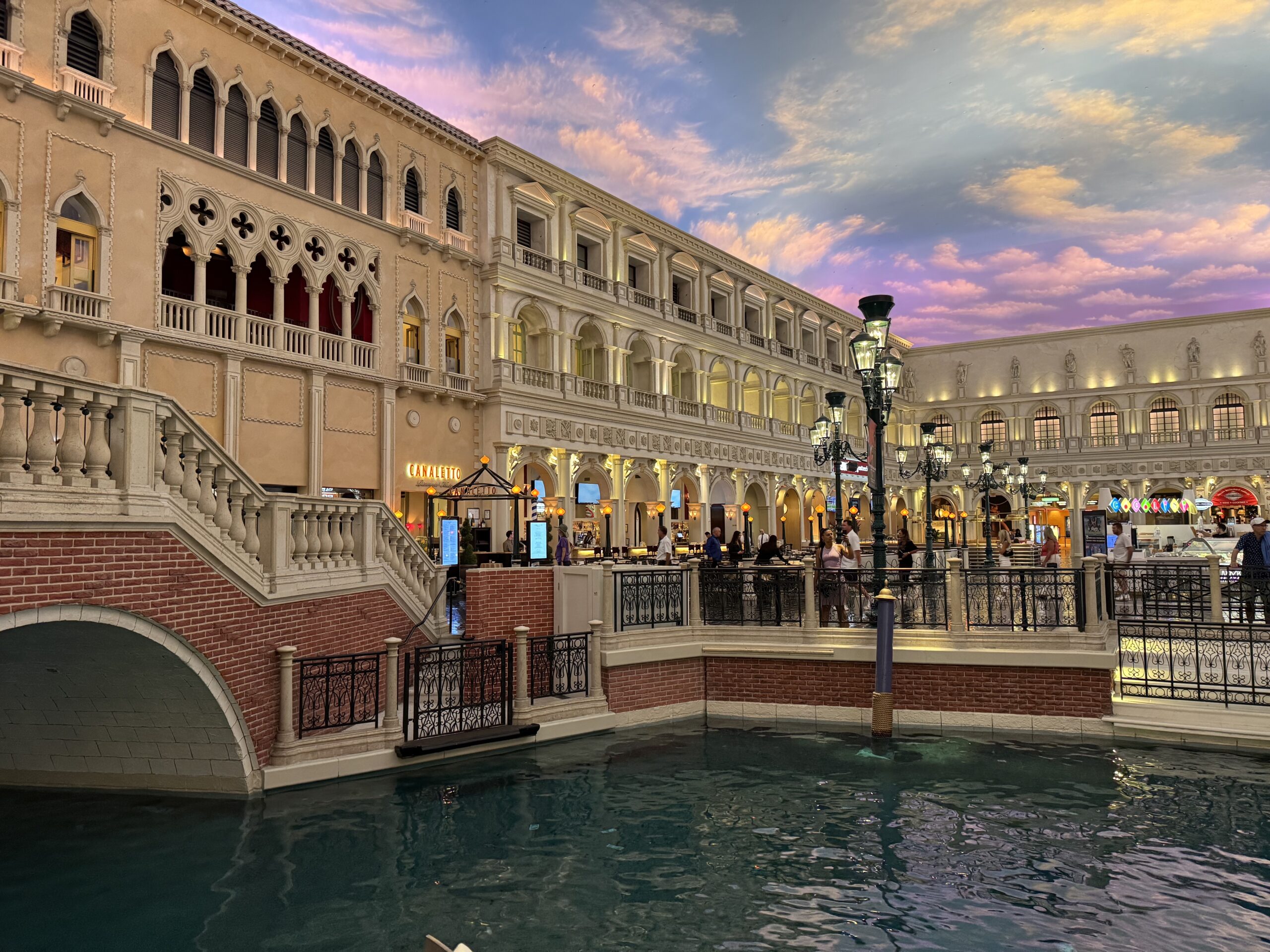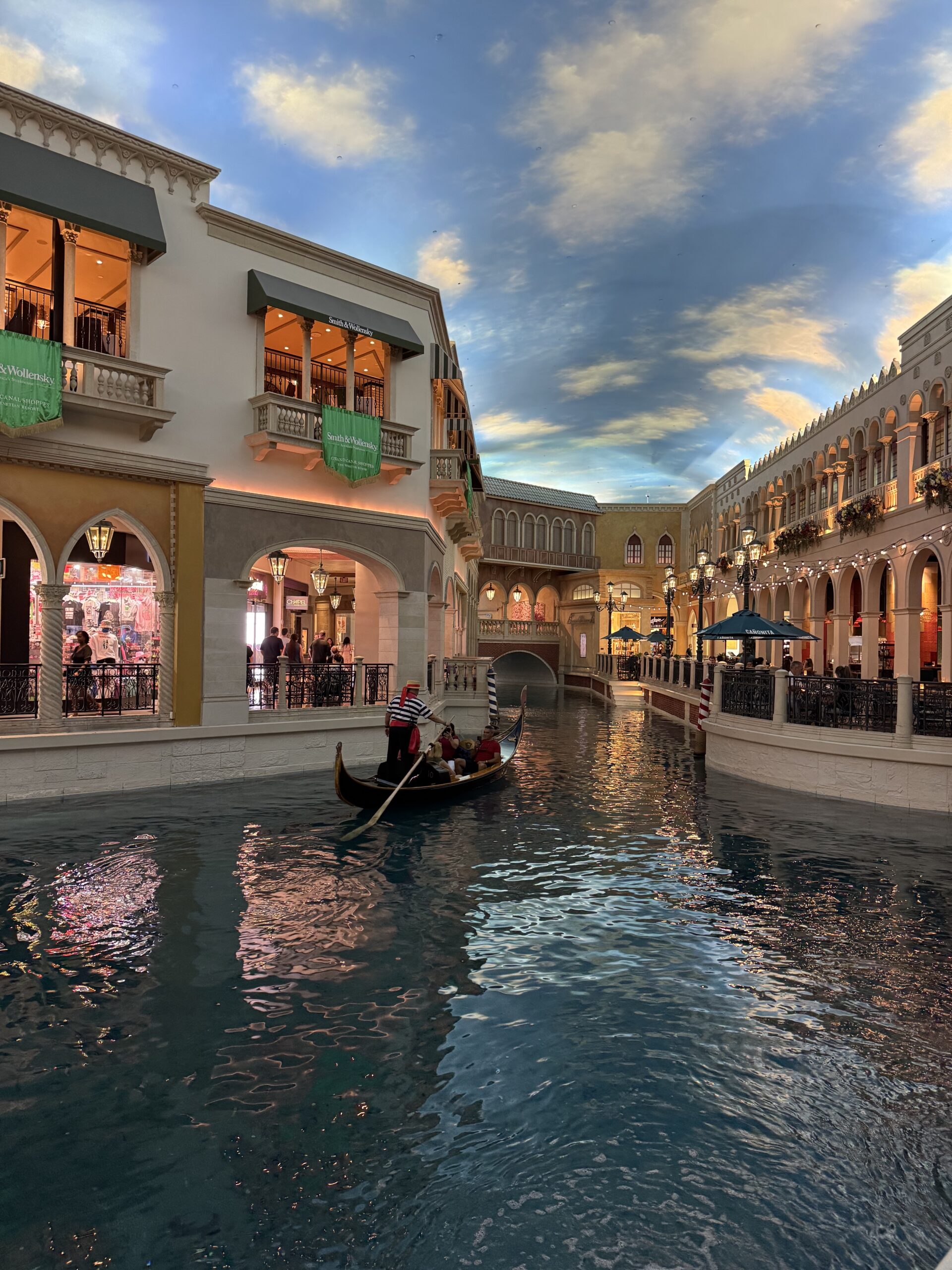 We headed to the Venetian for the second part of the trip! There is something deeply uncanny about the Venetian. They’ve nailed the architecture so well, except you’re also aware that you’re walking around inside a mall with a fake ceiling that’s designed to look like the sky. The strangest moment was when we were getting gelato and the “sun” set. The street lamps turned on and the blue skies faded to black and we were still sitting inside the entire time.