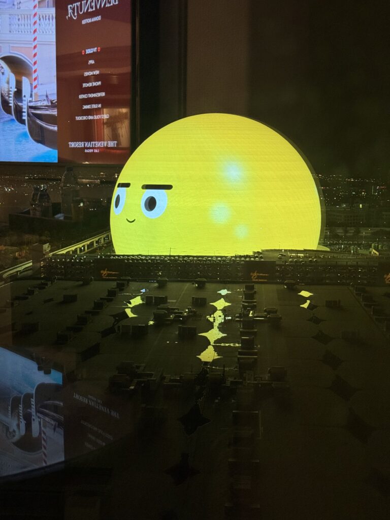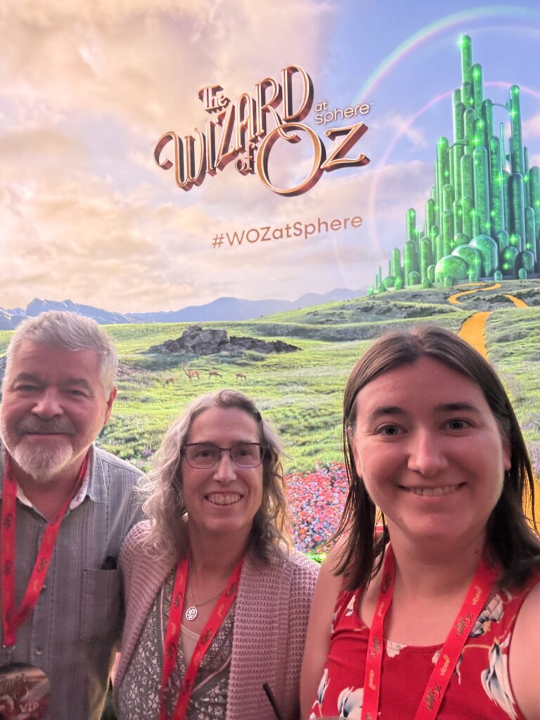 The room also had a view of the Sphere, which I loved! It’s so cool to see all the designs that they put on it. Especially its little smiley face. And the next day, we had the event we came to Vegas for: The Wizard of Oz!
