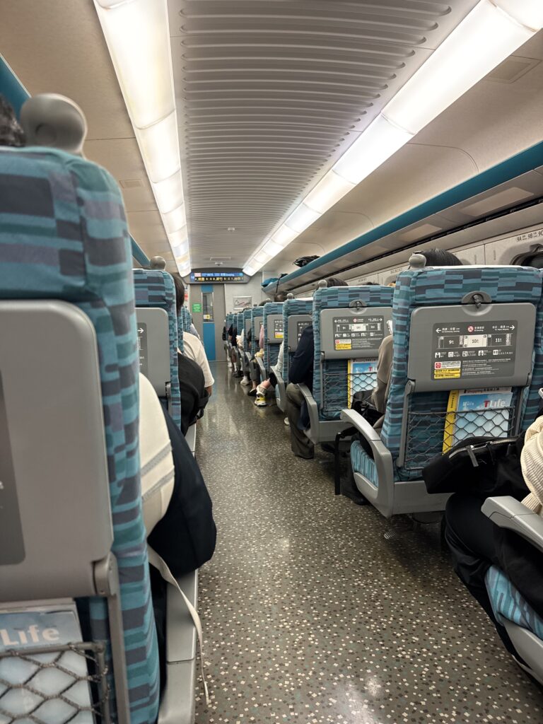 The train itself is beautiful and clean, with seats that remind me of a domestic first class plane experience. The scenery out the window was really cool – the majority of the cities in towns in Taiwan fall on the same spine in the west, and we passed right by Taichung and Tainan, among smaller towns and cities.