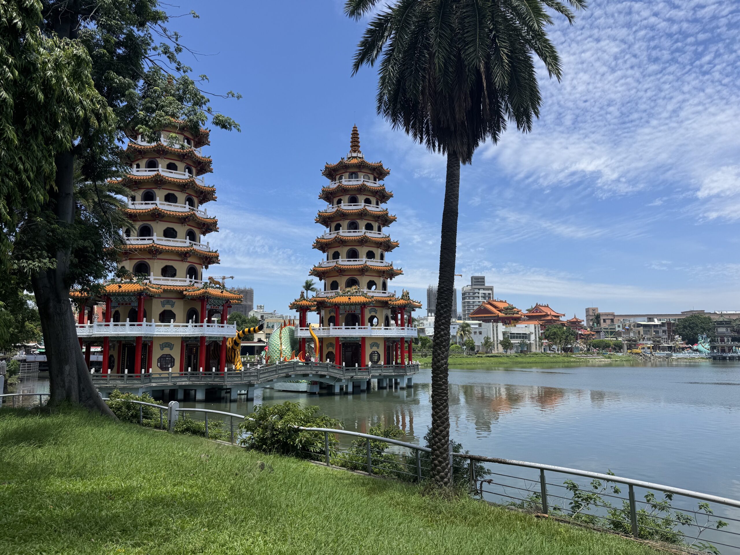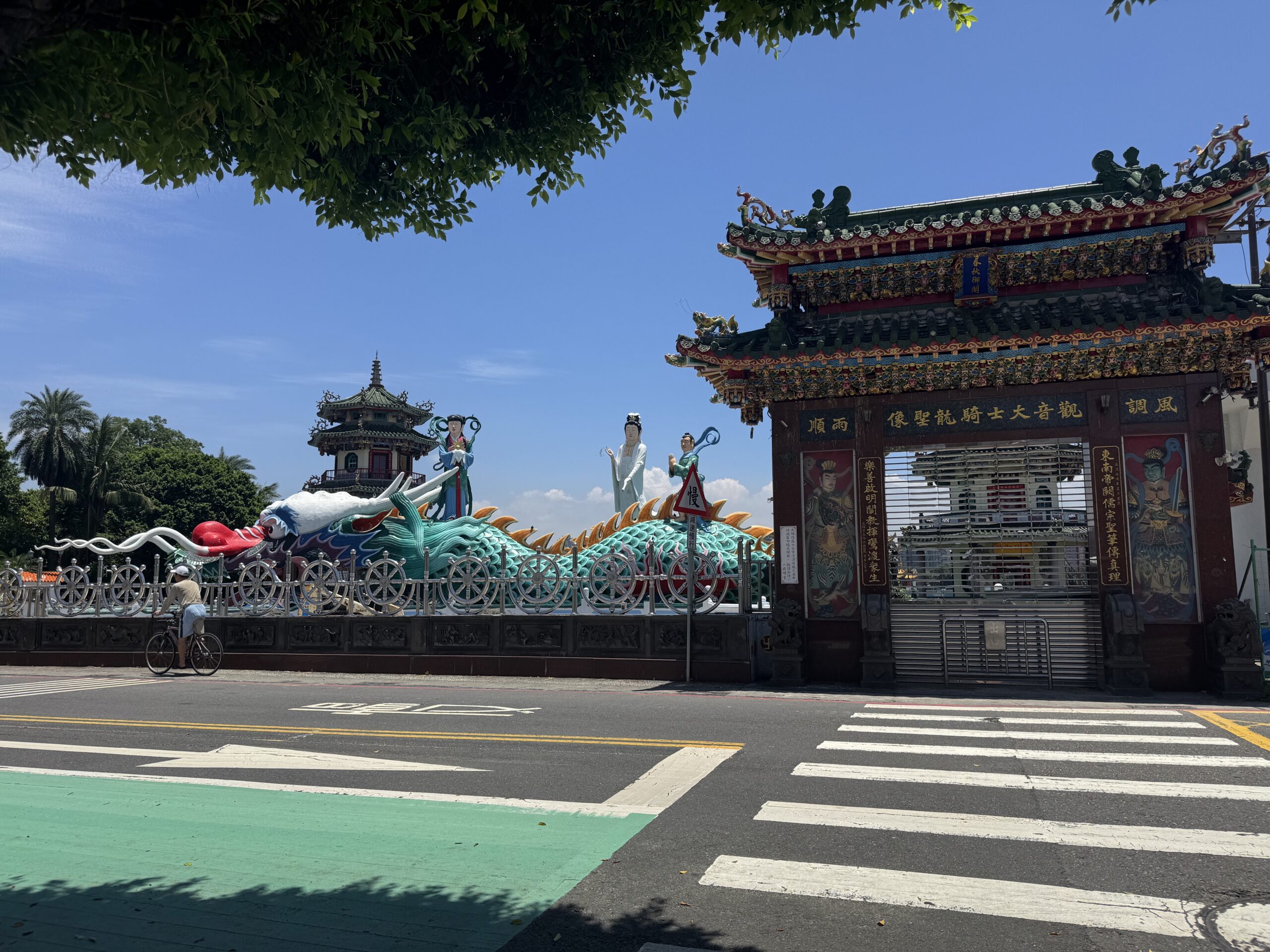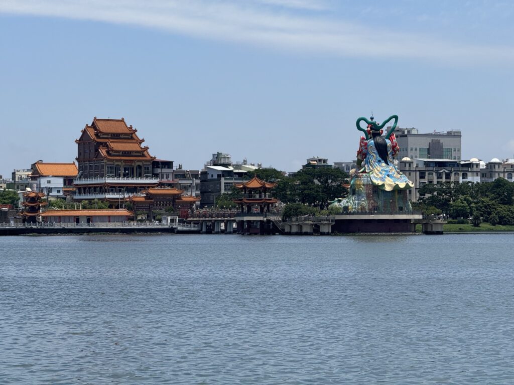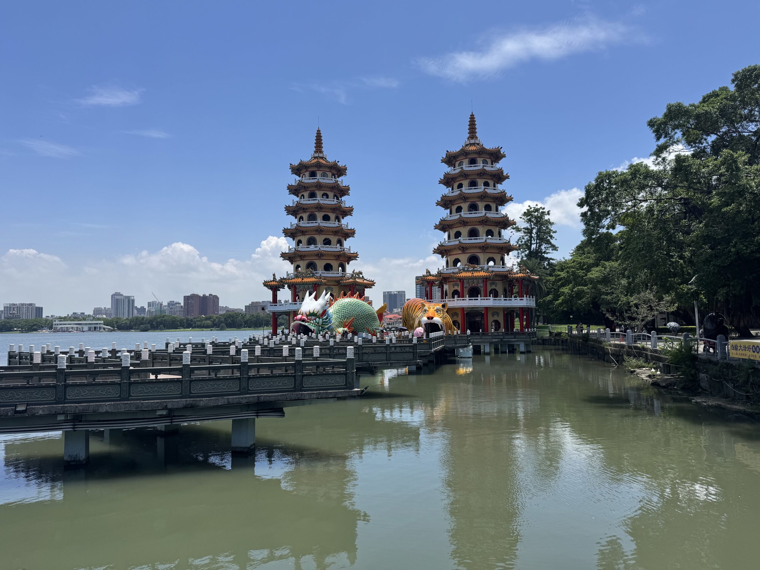 My first stop was one of the most famous sites in Taiwan: the Dragon and Tiger Pagodas! It was about a half hour walk from the high speed train station, Zuoying. It was a nice enough walk but it was very hot and humid, and the final part goes over a giant road (although thankfully they built an overpass).