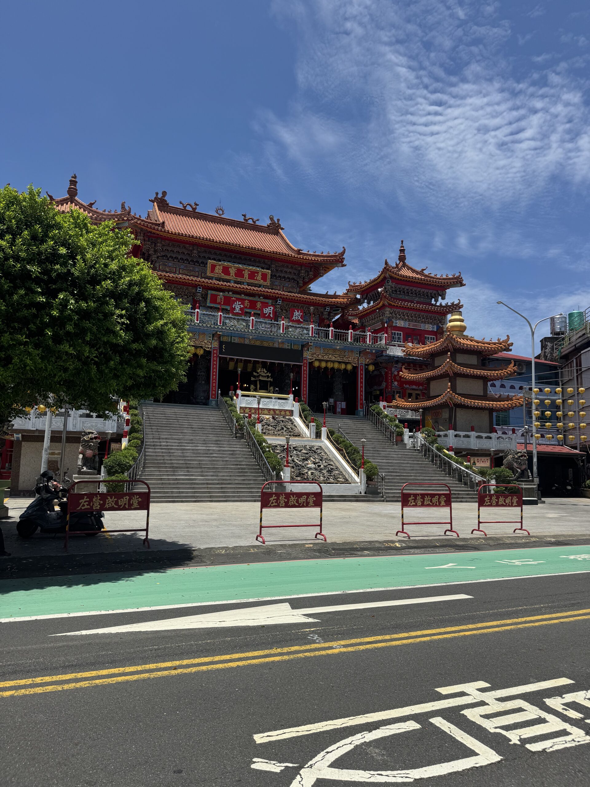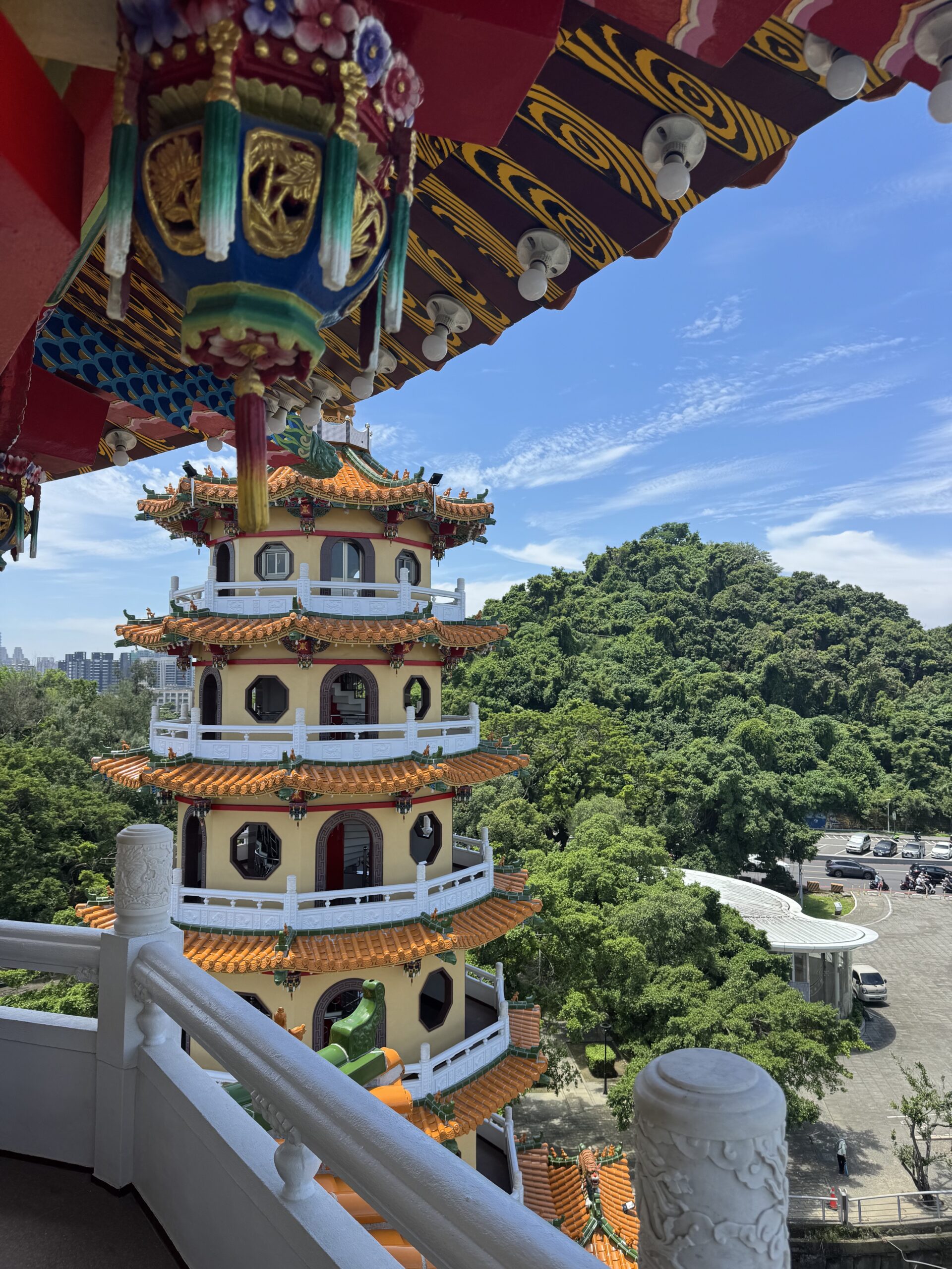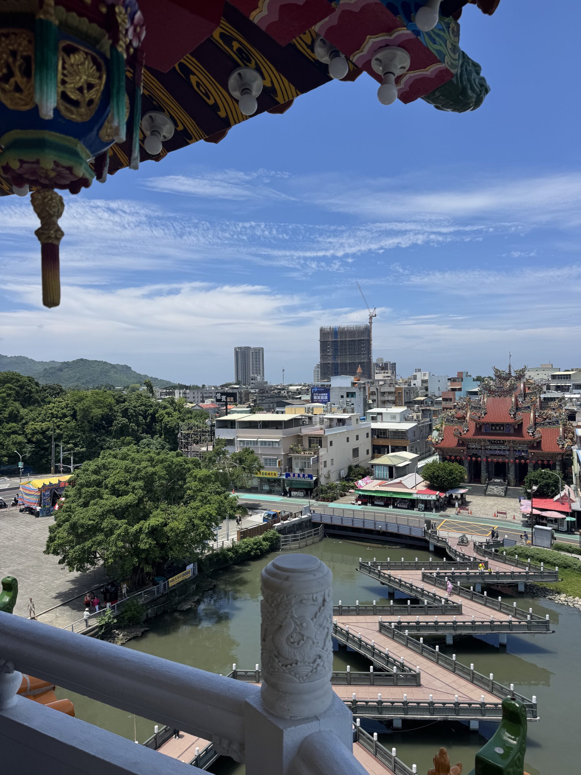 My first stop was one of the most famous sites in Taiwan: the Dragon and Tiger Pagodas! It was about a half hour walk from the high speed train station, Zuoying. It was a nice enough walk but it was very hot and humid, and the final part goes over a giant road (although thankfully they built an overpass).