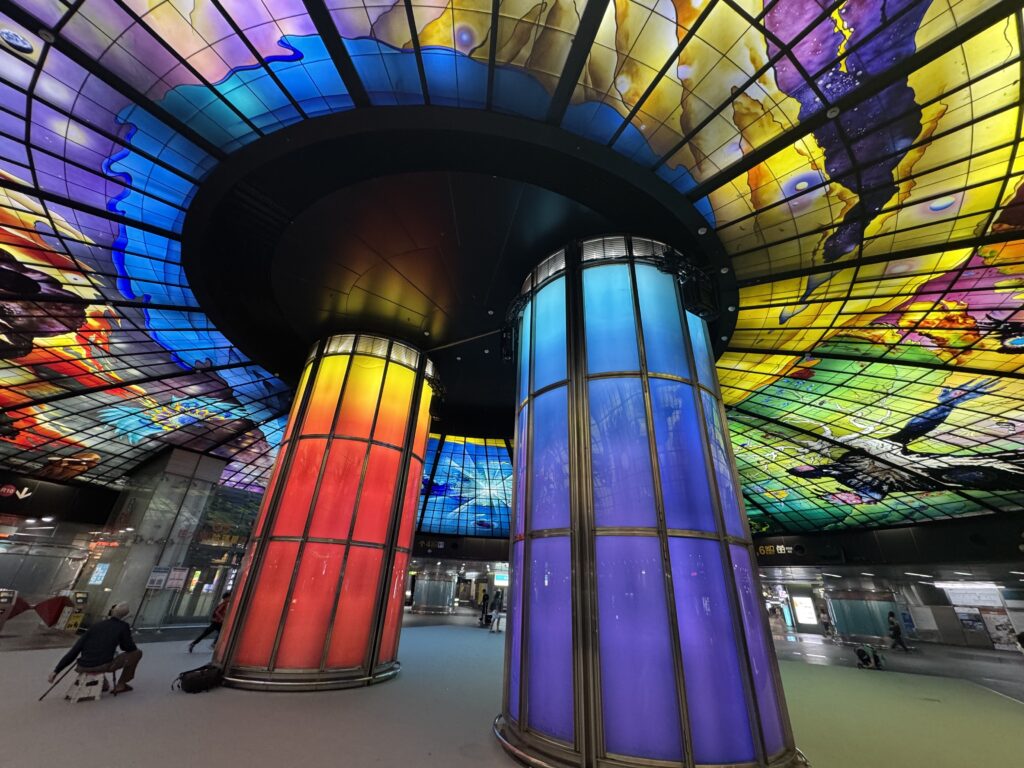 I made one more stop on the way back to the Zuoying high speed rail station to see the world’s largest glass art installation! The Dome of Light, at the Kaohsiung metro station, shows Taiwan’s history alongside the stars and the broader history of humanity. It was a pretty easy detour while I was already in the Kaohsiung metro station, and definitely worth a stop. It’s absolutely stunning. It’s probably the most beautiful metro station I’ve ever seen.