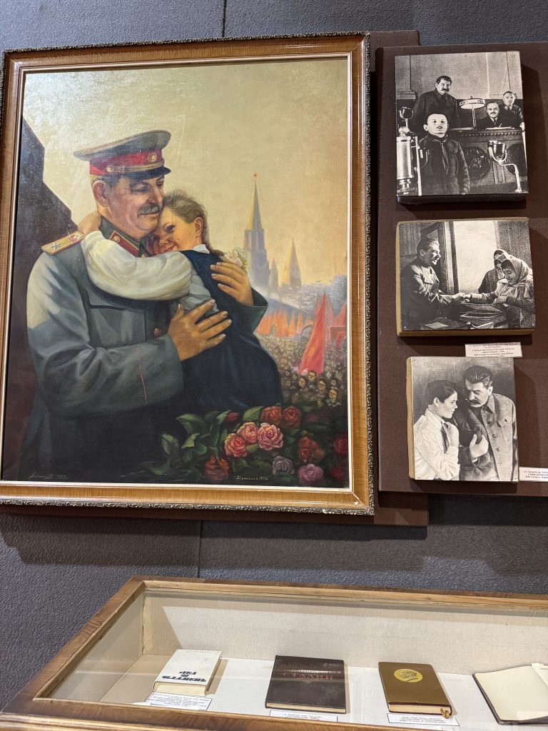 There is a small annex in the ground floor that mentions some of the death and prison camps and exile to Siberia, but you have to go looking for it. The majority of the museum is beautiful oil paintings and Central Asian carpets with his face on them and gifts that were given to him from various other world leaders. It was very interesting to see the way they presented this period of history.