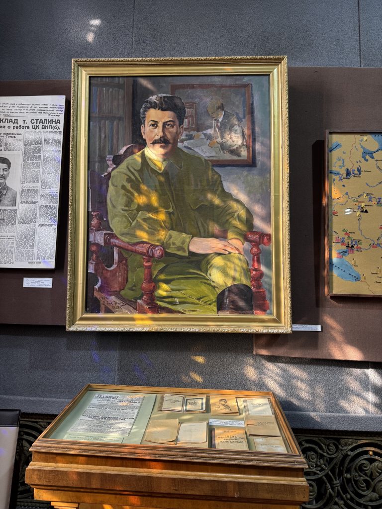 As you know, I am fascinated by propaganda, so I had a great time at the Stalin museum. Which, by the way, gives an unexpectedly rosy view of his reign. I would say the general narrative is that he was a part of the Russian Revolution alongside Lenin, then he defeated the Nazis, and then he died. Here’s a photo of him signing a new law! A law that does what, you ask? Don’t worry about that at all!!! He got rid of Nazis!!! Did we mention that part???
