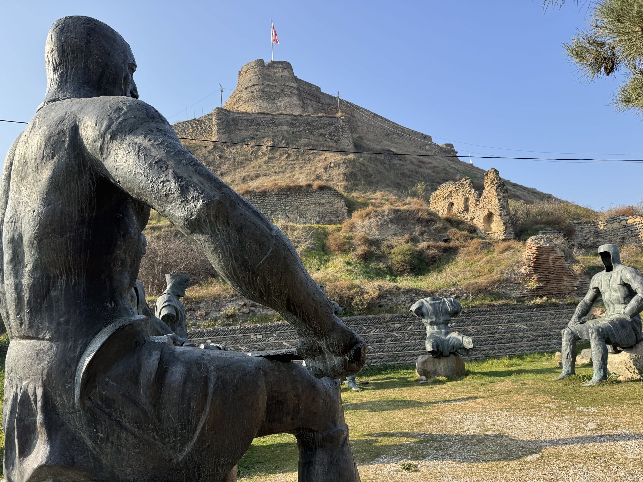 Once we were done at the museum, we headed to the Memorial of Georgian War Heroes. My friends were deeply unprepared for the scale of this monument as we rounded the corner. The statues were super cool, especially with their location at the base of the Gori Fortress.