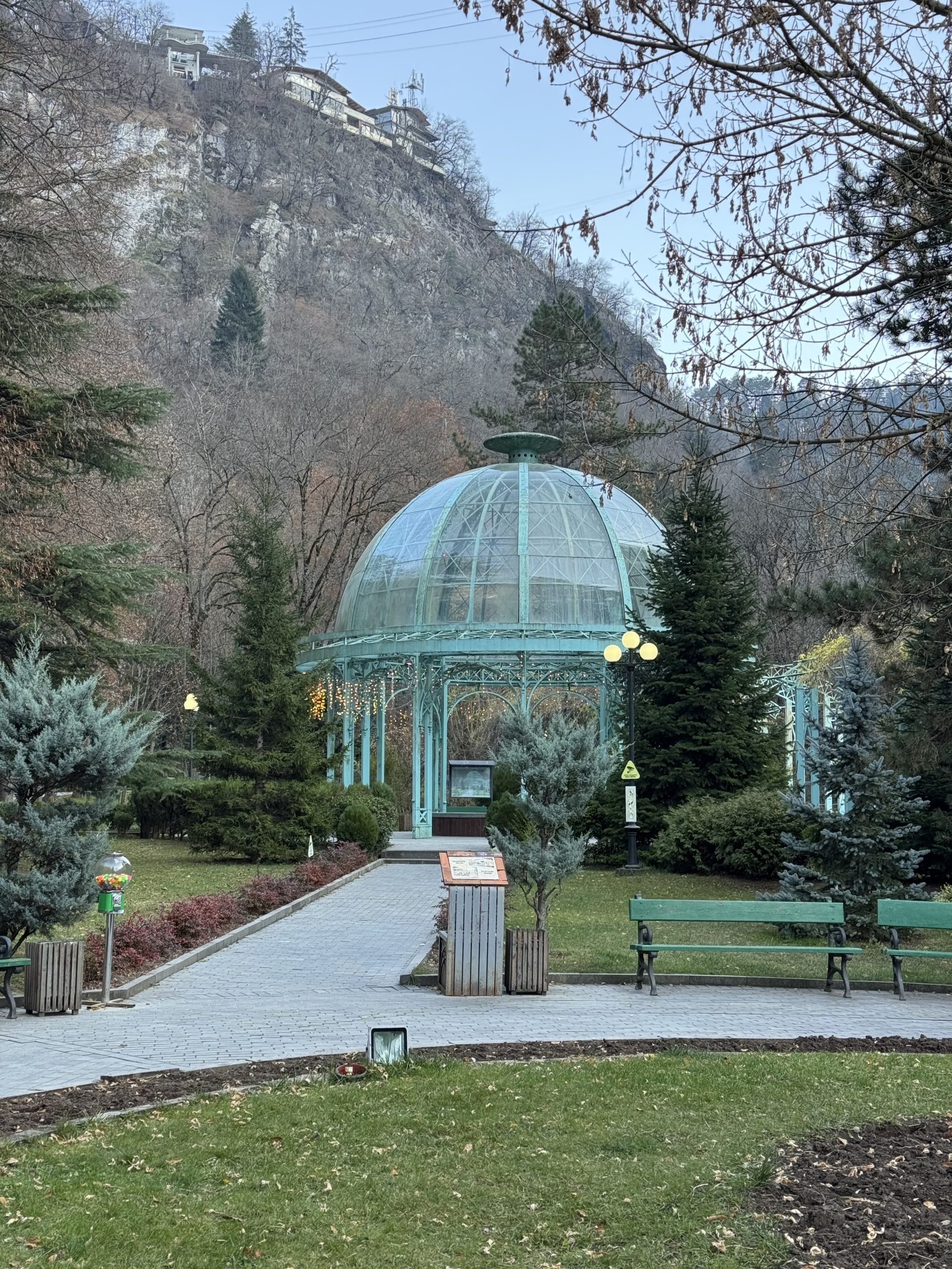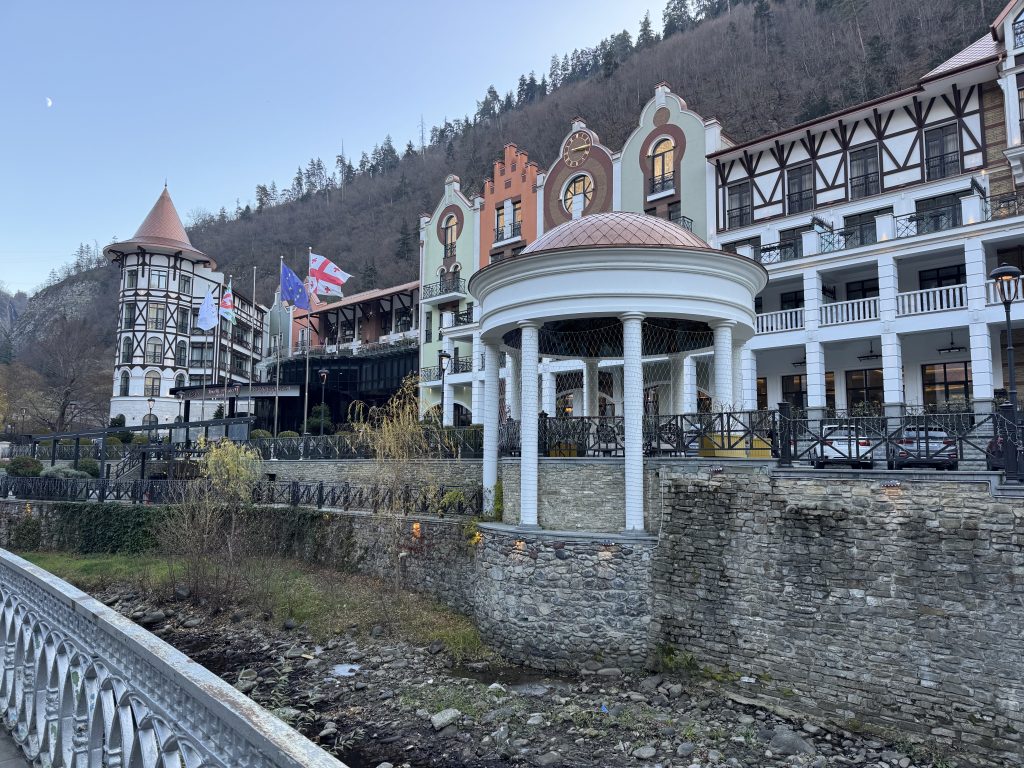 Borjomi is a resort town known for its mineral water. There’s a brand of bottled water called Borjomi, although I certainly hope its water tastes better than what we tried out of the spring. Allegedly, it has some sort of healing qualities, although I would have to be pretty sick to want to drink its hot and sulfurous stream again.